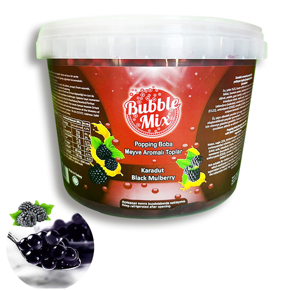Bubble tea usually starts with a black tea or green tea based beverage. Optionally, fruit syrups can be added to the tea base. Then, the prepared popping boba is added to the drink. A stirring motion can be made to distribute the popping boba evenly in the glass and it is ready to be served. Offering different tastes and textures with each sip, bubble tea offers a delicious and fun beverage experience. You can also use popping boba by adding it to foods such as yoghurt, ice cream, etc.
